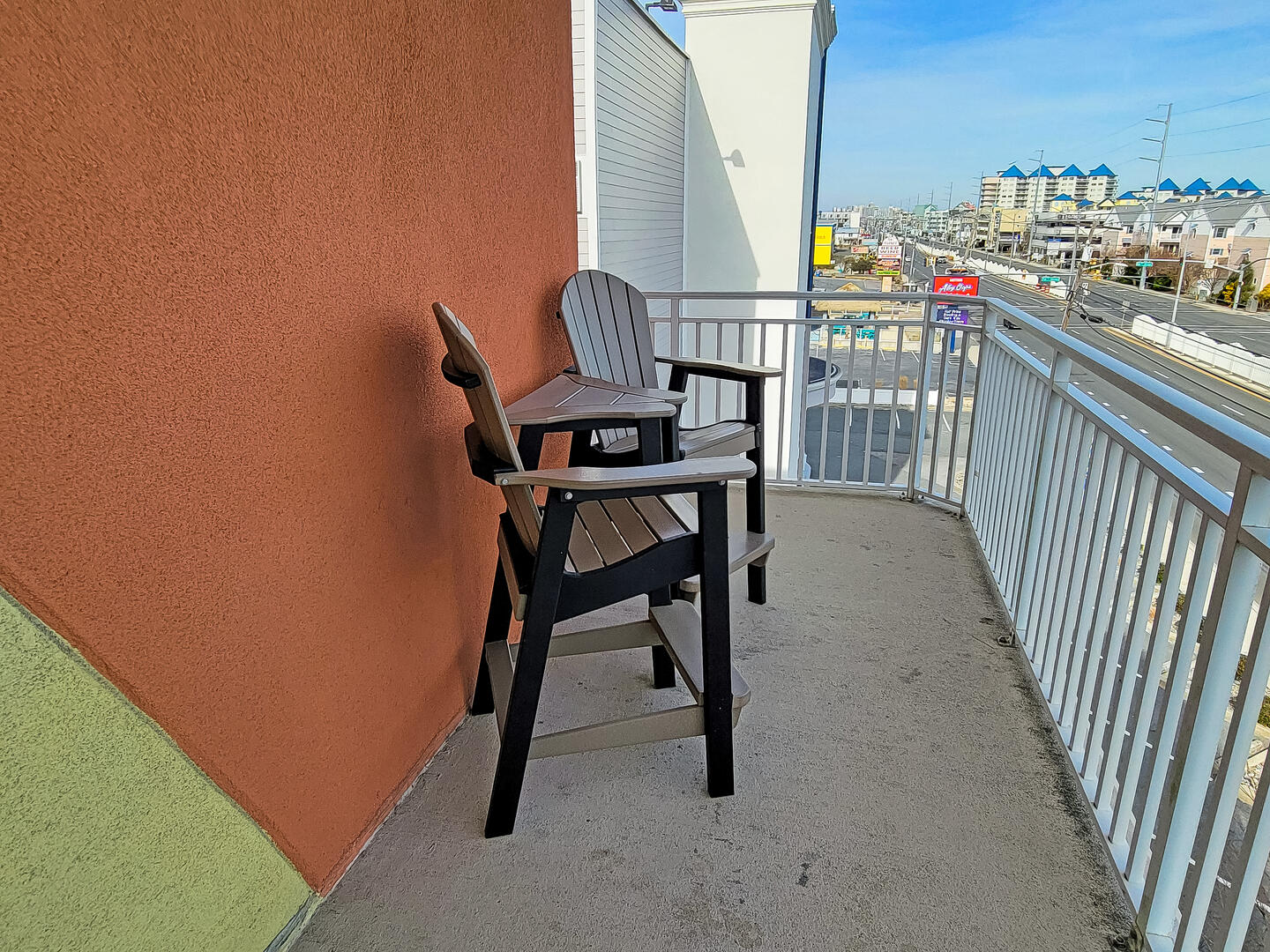 Midtown Ocean City with rooftop pool! This 2 bedroom, 2 bathroom condo has a balcony and is close to everything! Catch a glimpse of the ocean from the large wrap balcony that can be accessed from the living areas and main bedroom. Great building with an elevator just across the street (1.5 blocks, a 3-4 minute walk) from the beach and Atlantic Ocean! The main bedroom has a king bed, the second bedroom has a pair of double beds, and the living room has a Queen sleep sofa so you can sleep 8 people comfortably. The property has high speed wifi/internet so you can enjoy streaming with your login credentials from the Smart TVs. There is a full-sized washer and dryer in this unit. This condo is also handicapped/wheelchair accessible with 36" door openings and comes with 2 parking spaces, one covered assigned and another unassigned. You'll have two parking spaces, one assigned and another unassigned. Condo is located on the fourth floor and there is an elevator in the building. Enjoy being in close proximity to many great restaurants and bars; Seacrets, Macky's, Fager's Island, 45th Taphouse, Tequila Frogs and Alley Oops to name a few! Also close to Jolly Roger Amusement Park and a variety of shopping, dining and entertainment options!