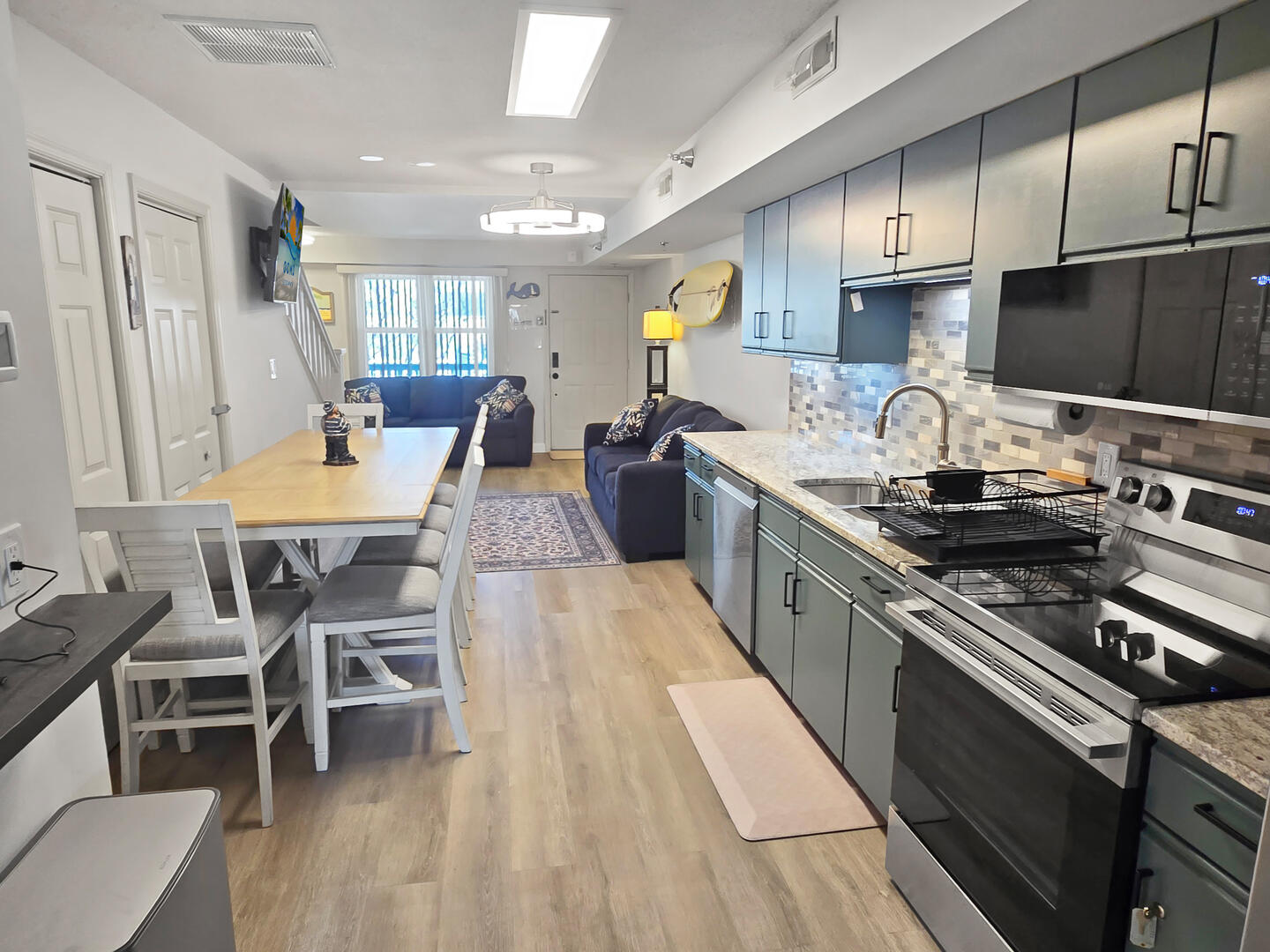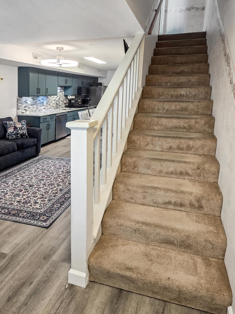 This condo also has 2 full bathrooms, with one on the main level and another on the second level. The living room has a Smart TV so you can enjoy your favorite streaming services (logging in with your own credentials). Other amenities include central air conditioning, Wi-Fi/high speed internet, a washer and dryer and one assigned, under the building parking spot. Please note no additional parking spaces are available.The entry is on the second level of the building and there is no elevator in the building.