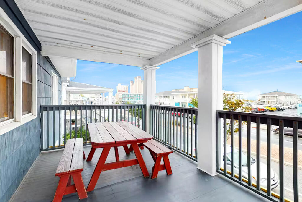 PRIME 26TH ST. OCEANVIEW LOCATION ! 3 bedroom second floor condo, just a block to the beach, famous boardwalk and Atlantic Ocean! The large living/dining room areas offer an open floor plan with plenty of room for everyone to gather and socialize - you won't be cramped here! Located off of 26th St. in the vibrant and exciting part of town, you'll have easy access to the ocean, beach, famous boardwalk, and all of the exciting events happening at the inlet. This space is perfect for accommodating up to 10 people. High speed internet/wifi is included, along with cable tv in the living room, the second bedroom and the third bedroom. The first and second bedroom have queen beds. The third bedroom has two bunk beds that both have full and single mattresses. Central air conditioning, a washer and dryer, and one assigned parking spot is provided for added convenience, along with a large covered porch where you can sit and enjoy your favorite beverage, people watch or simply take in the breeze off the Atlantic Ocean. This is even one of the few condos in town that has a huge side community yard along with a picnic table and grill for your enjoyment. There is even a view of the ocean that can be enjoyed from the front porch. Whether you're looking to enjoy the waves, explore nearby attractions, or simply unwind, this condo has everything you need for a memorable vacation! In addition to this great condo being close to the boardwalk and beach, it is also walking distance to many restaurants like Fish Tales, Mother's Cantina, Pit N Pub, Dry Dock 28, Higgins Crab House, etc. Enjoy the charm of this condo for your perfect Ocean City vacation! This condo is on the second floor, and the building does not have an elevator.
